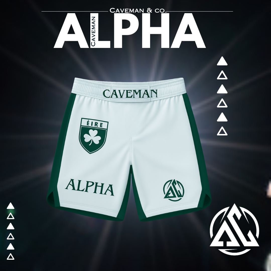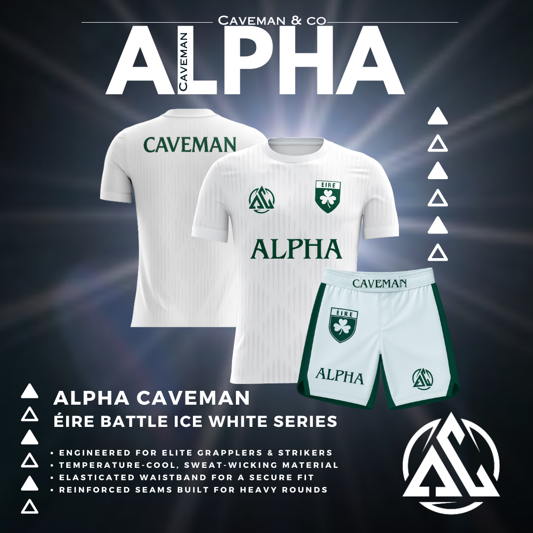 The crisp Ice White colourway, paired with the Éire crest and Alpha Caveman branding, represents both Irish heritage and modern combat culture. Clean, sharp, and instantly recognisable, this set carries the spirit of fighters from every corner of the country.