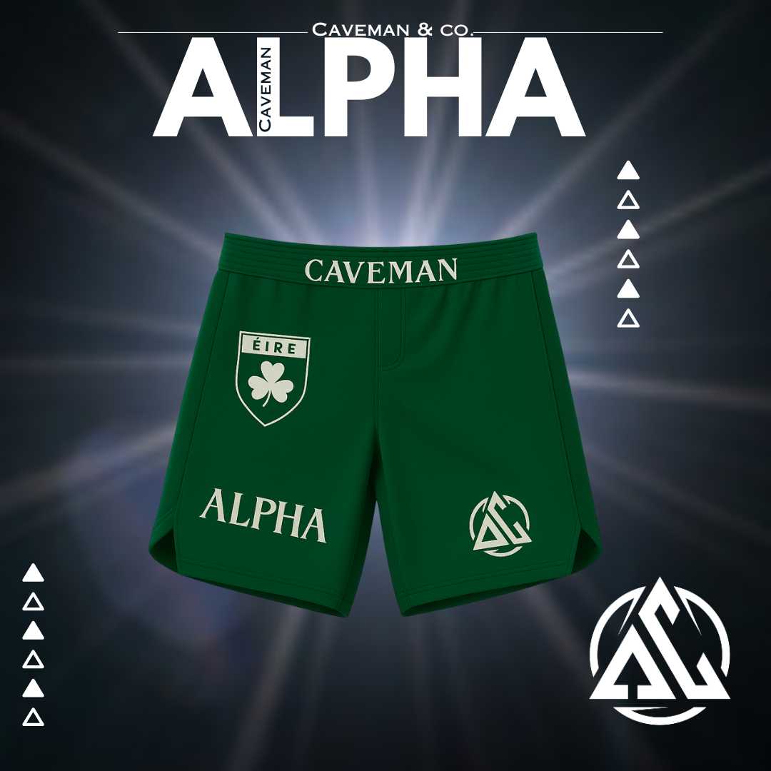 The deep green colourway, paired with the Éire crest and Alpha Caveman branding, represents Irish tradition and modern combat culture. Clean, sharp, and instantly recognisable, this set carries the spirit of fighters from every corner of the country.